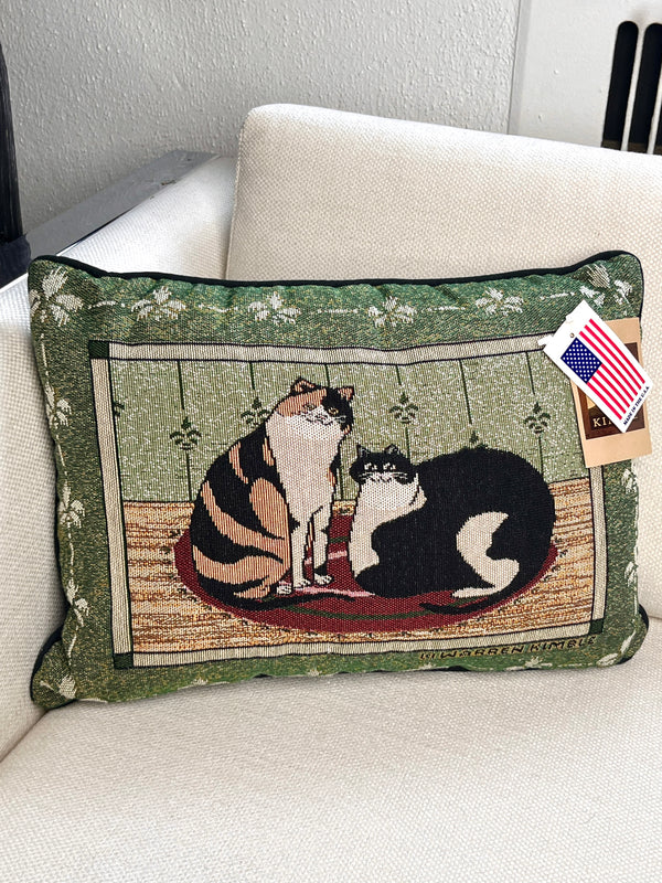 Vintage Cat Needlework Throw Pillow by Warren Kimble