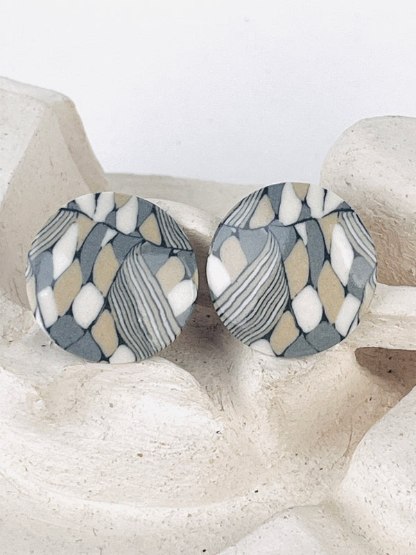 Vintage Nerikomi Porcelain Earrings - Grey & Tan