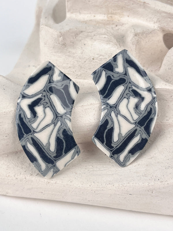 Vintage Nerikomi Porcelain Earrings - Black & White