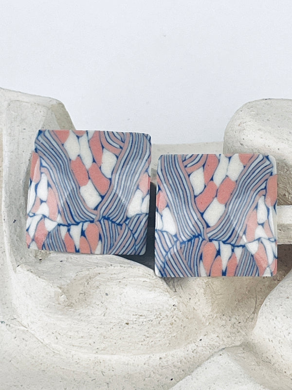 Vintage Nerikomi Porcelain Earrings - Pink, Blue, & White