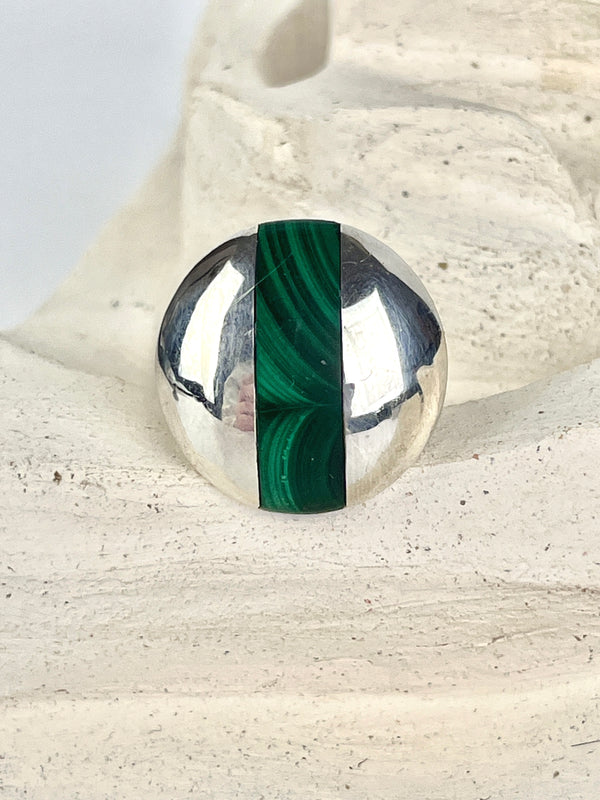 Sterling Dome Ring with Malachite Inlay
