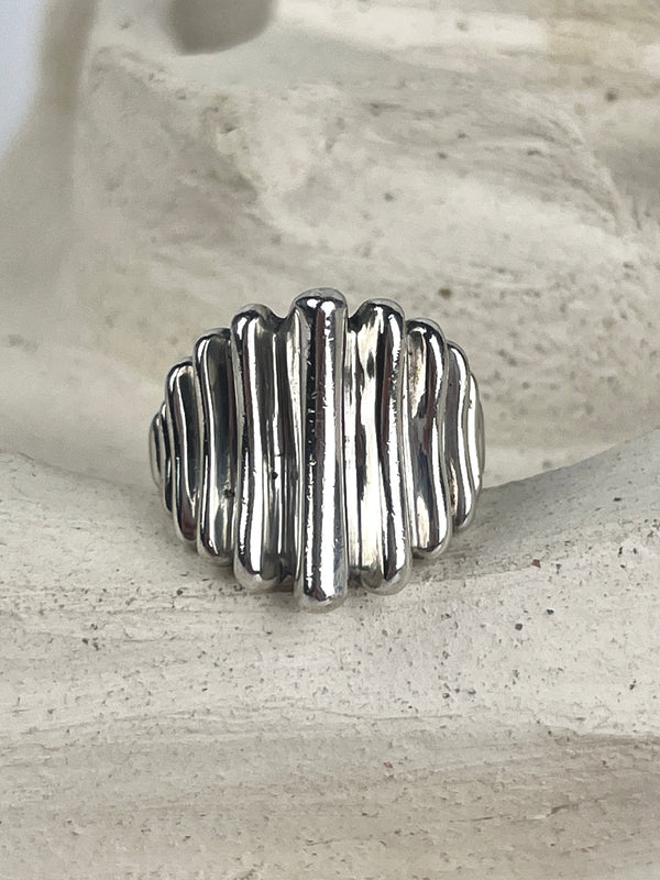 Modernist Ribbed Sterling Ring