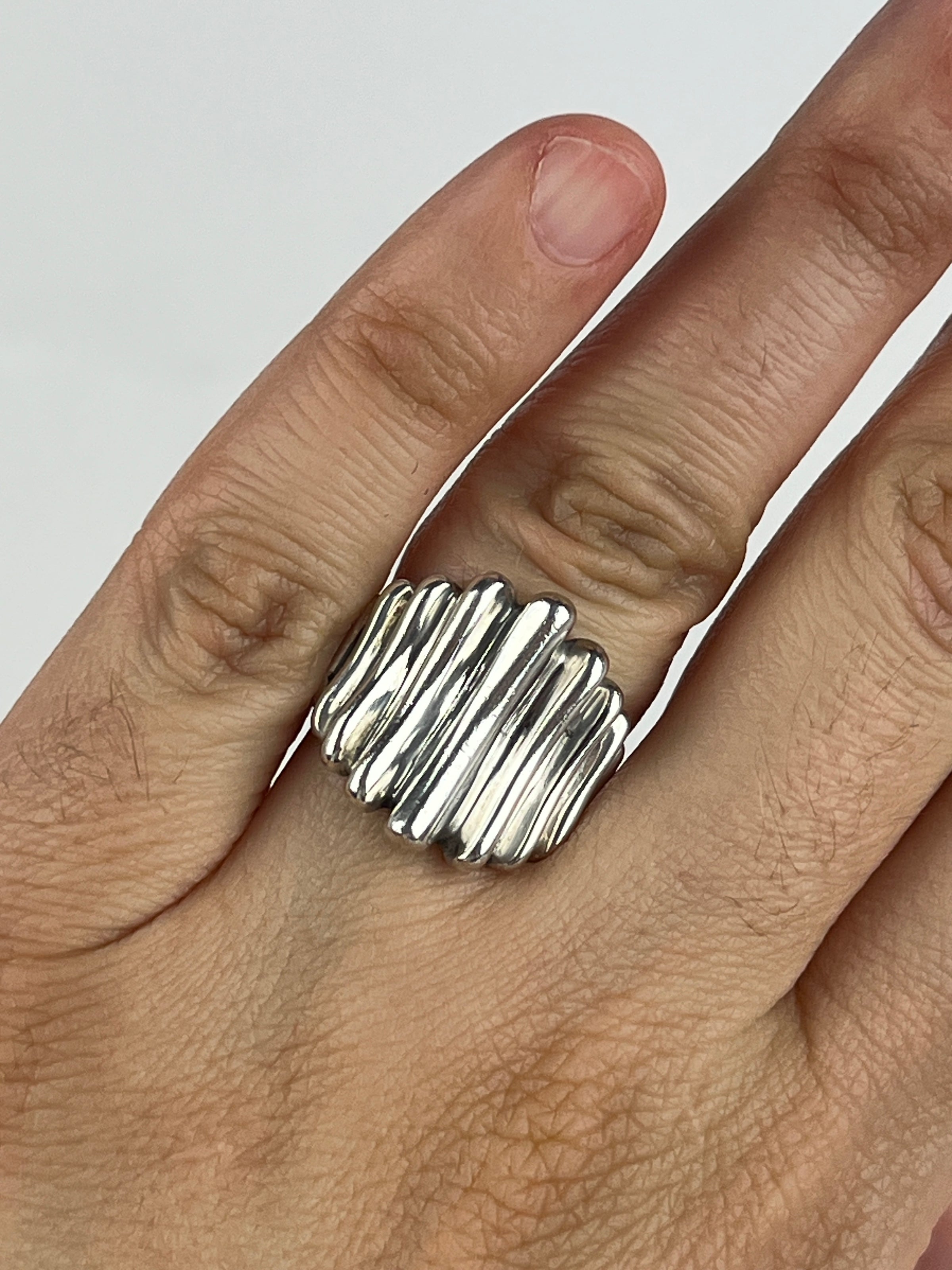 Vintage ribbed sterling silver modernist ring. Stamped 925.