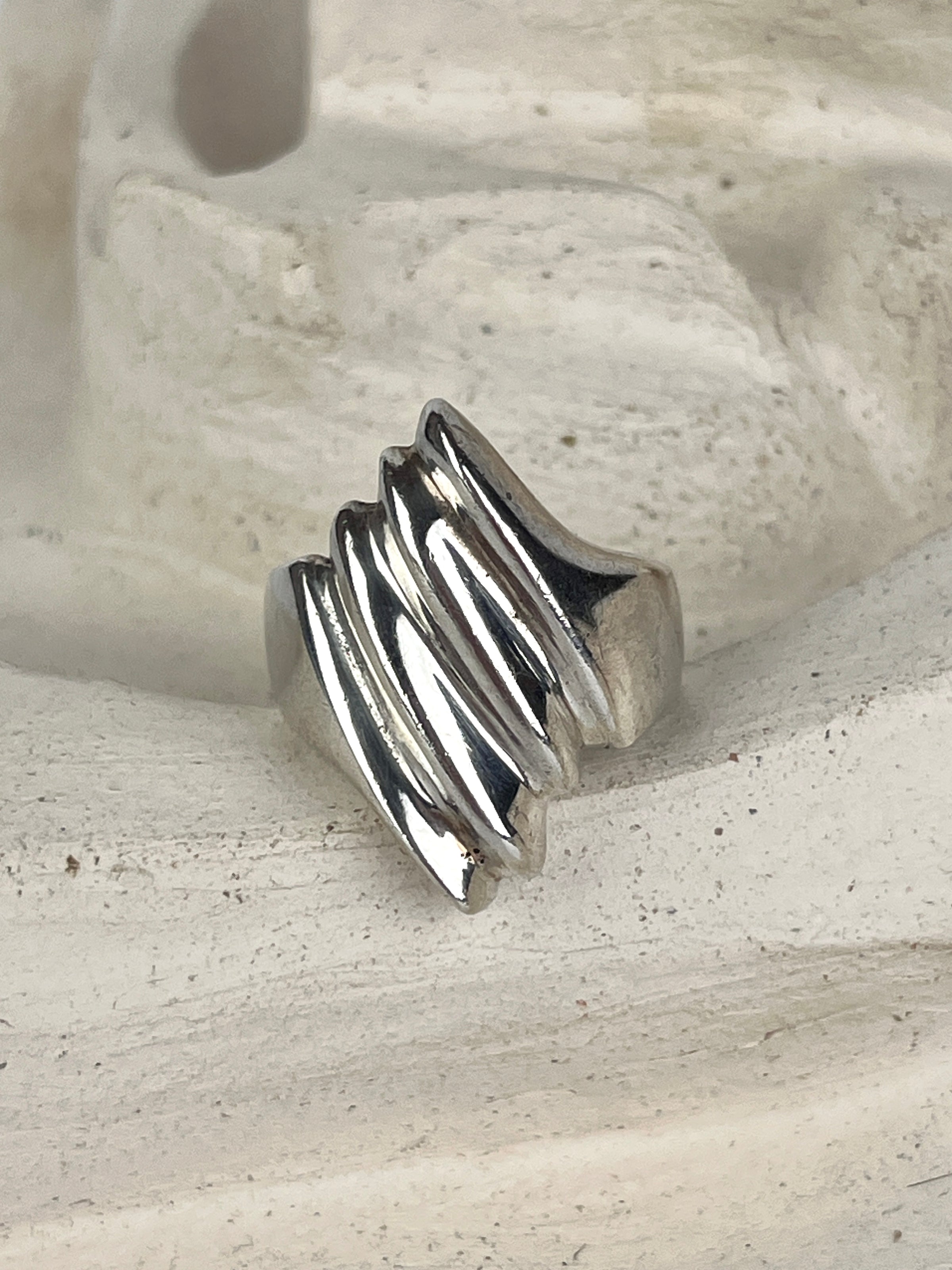 Vintage sterling silver modernist wave ring. Stamped 925.