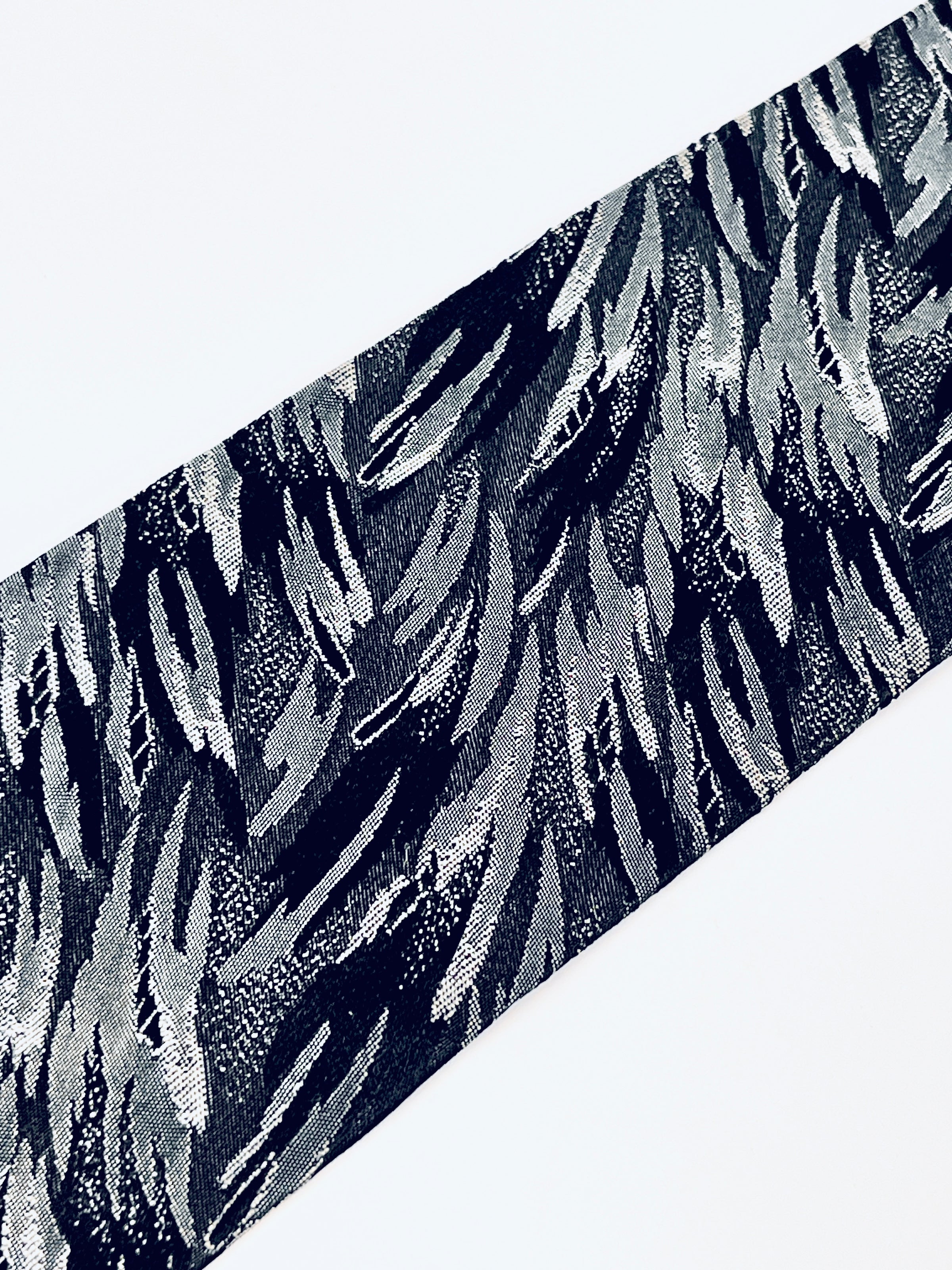 Vintage 1960s skinny silk tie in silver, gray, and black.