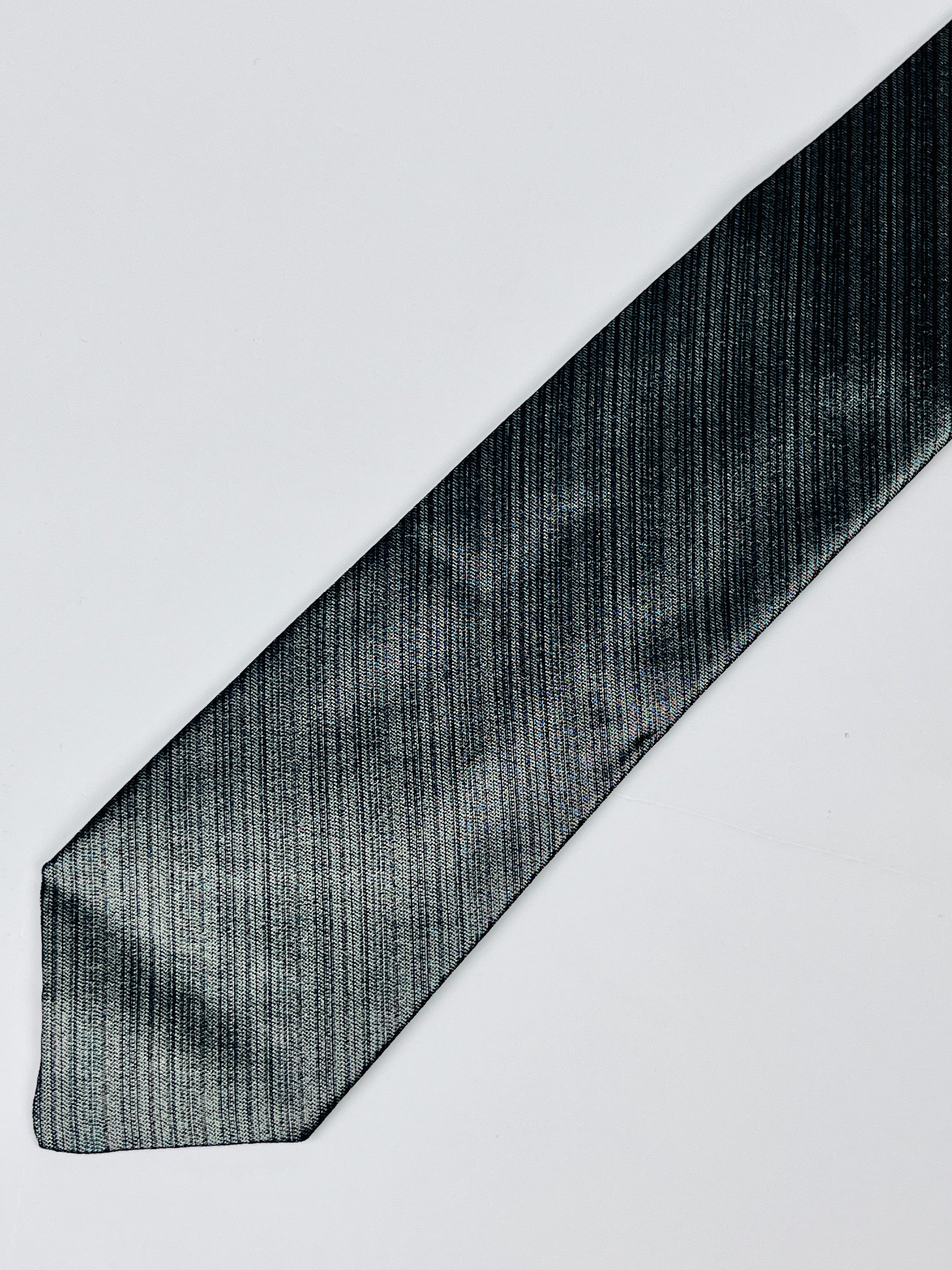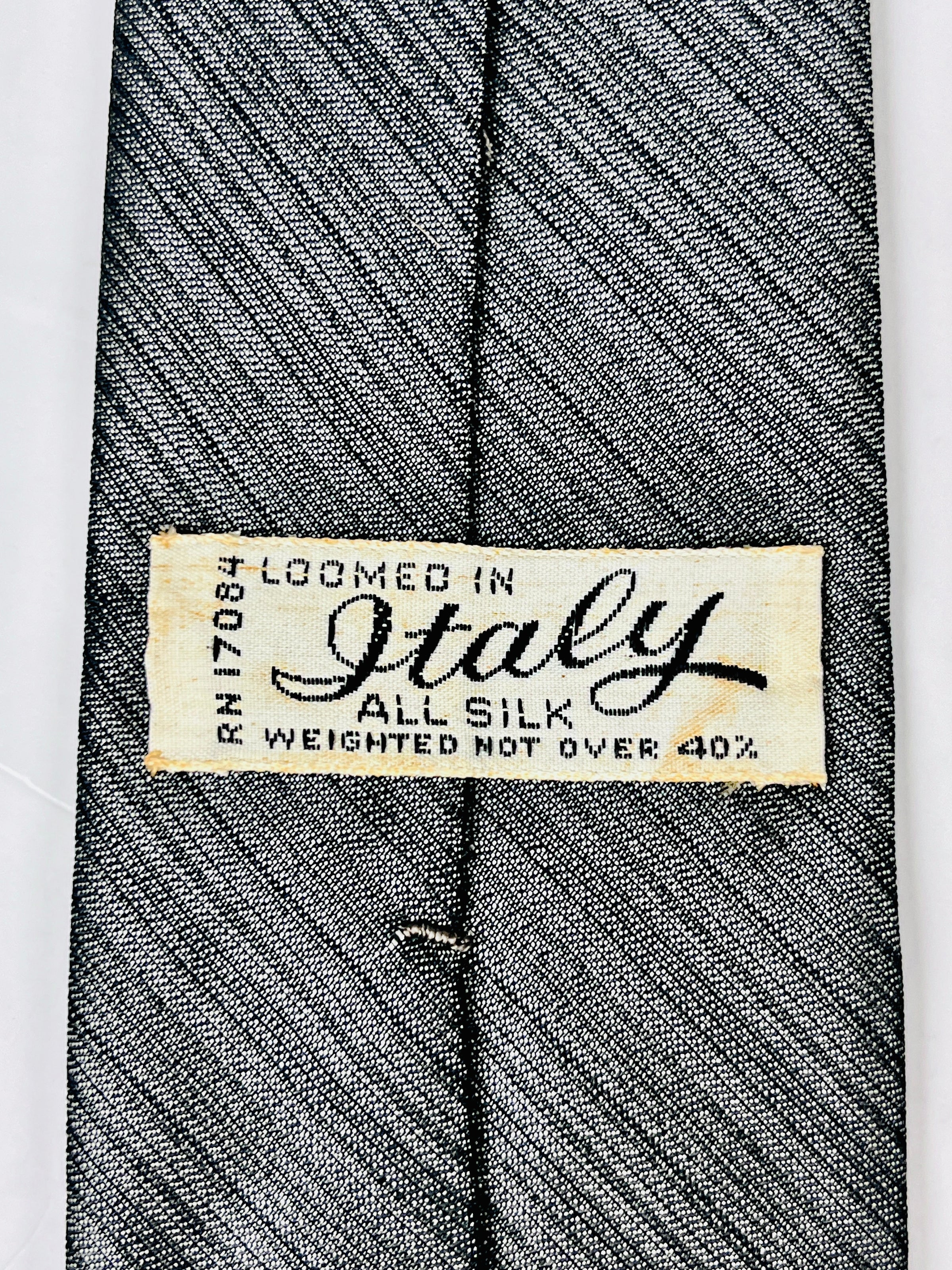 Vintage 1960s skinny silk tie in silvery gray and black. Made in Italy.