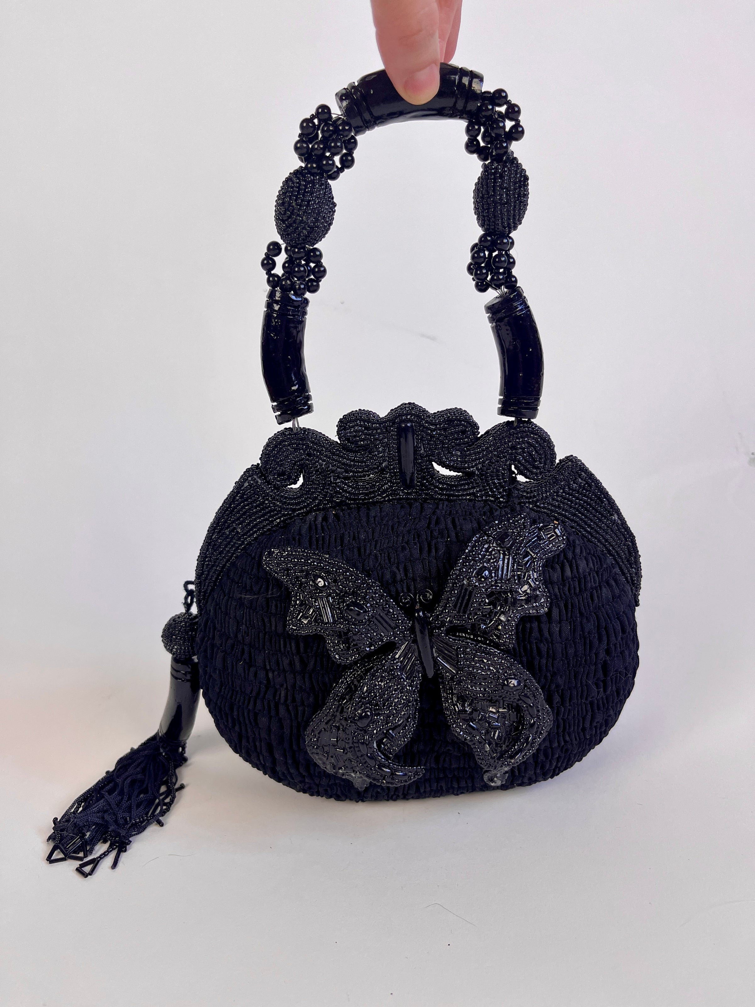 Vintage Black Beaded Butterfly Bag