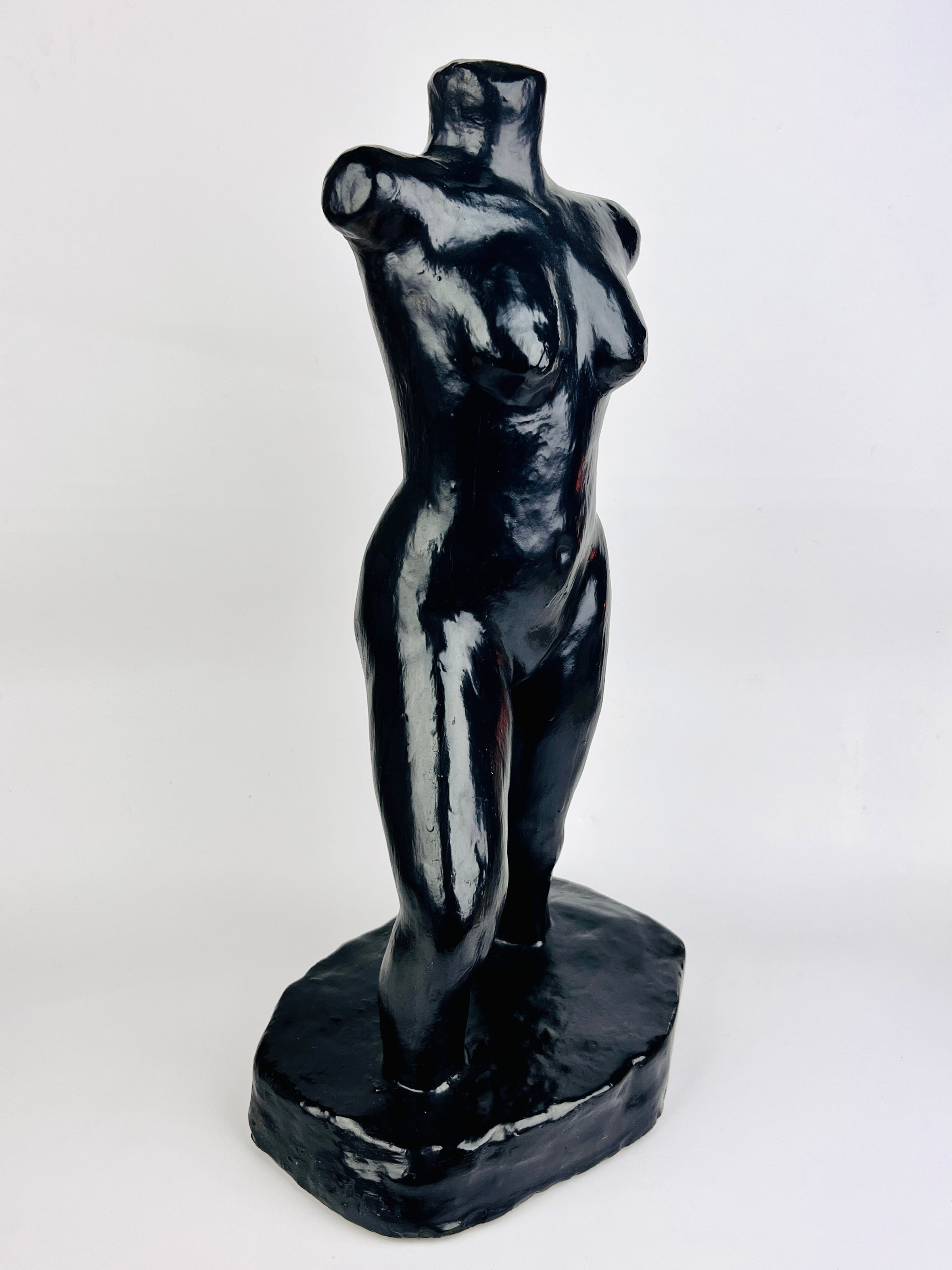 Vintage handmade female nude bronzed plaster sculpture.
