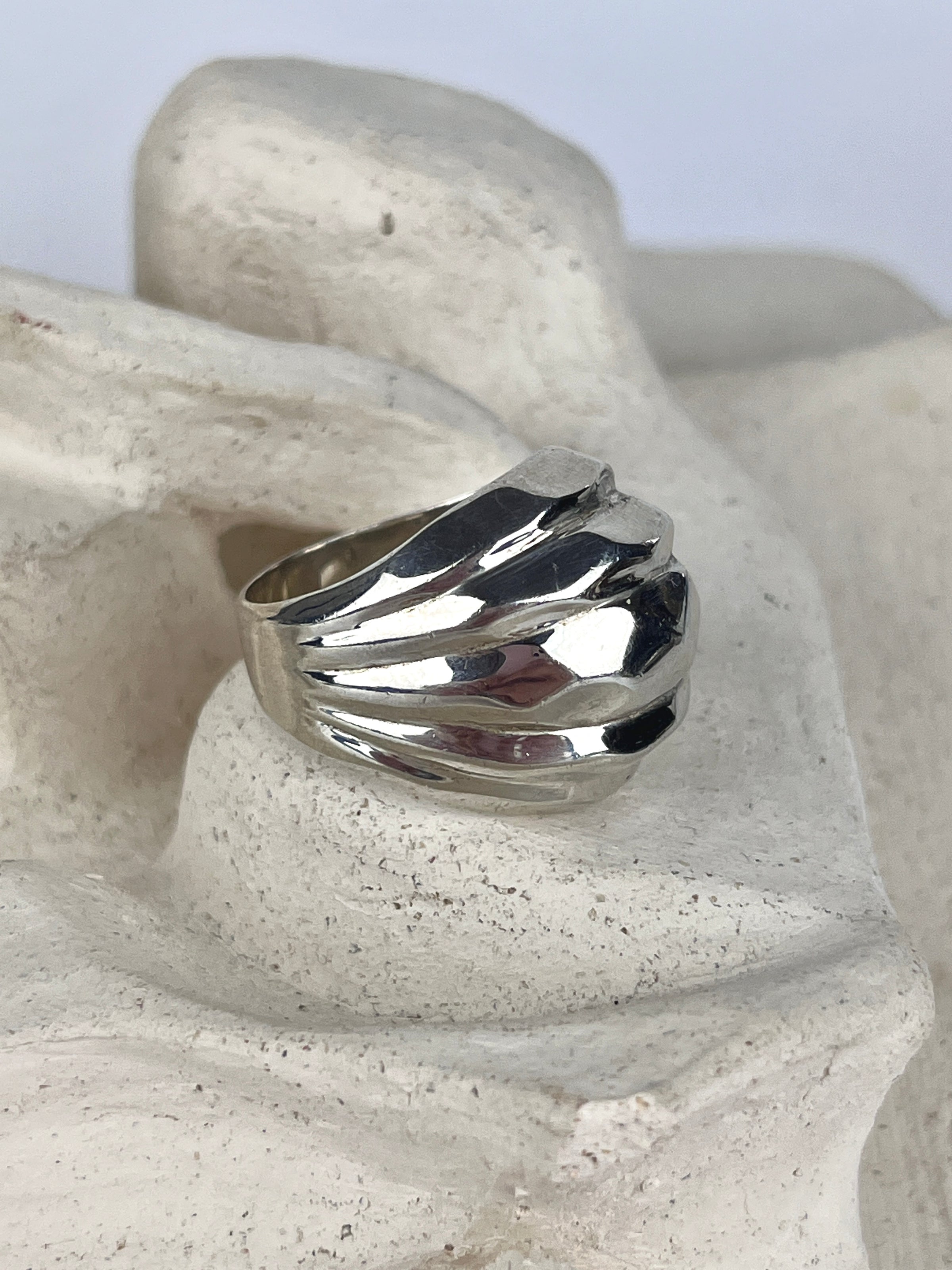 Modernist Sterling Textured Dome Ring