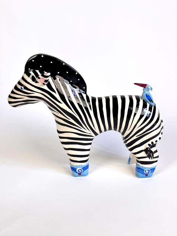 Vintage Cobalt Ceramic Figurative Vase, Signed