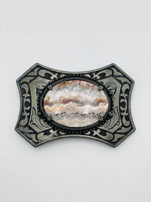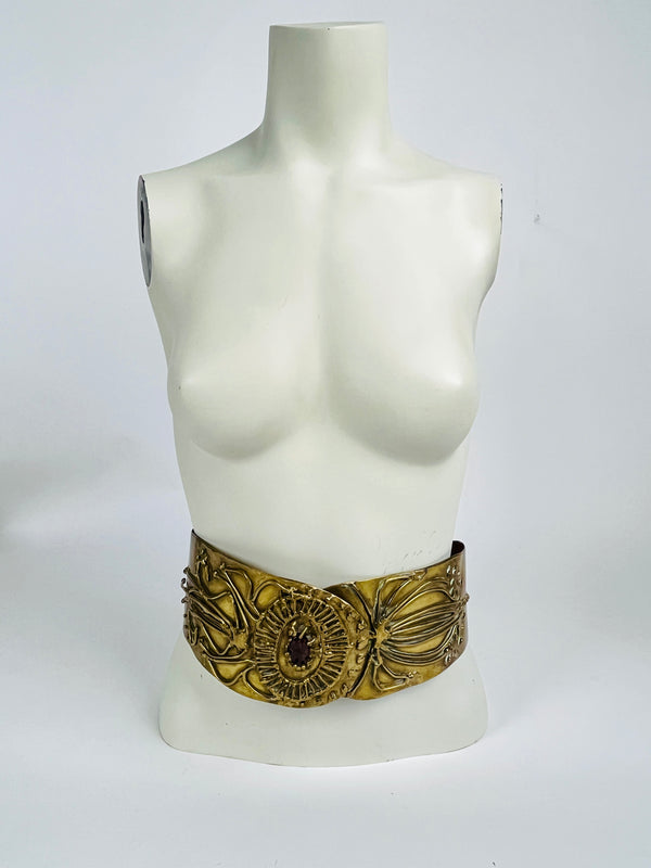 Vintage Solid Brass and Fire Agate Brutalist Belt