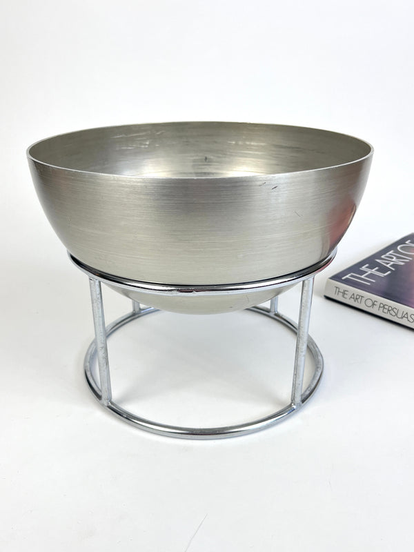 Vintage Modernist Hugh Acton Spun Aluminum Planter on Chrome Stand
