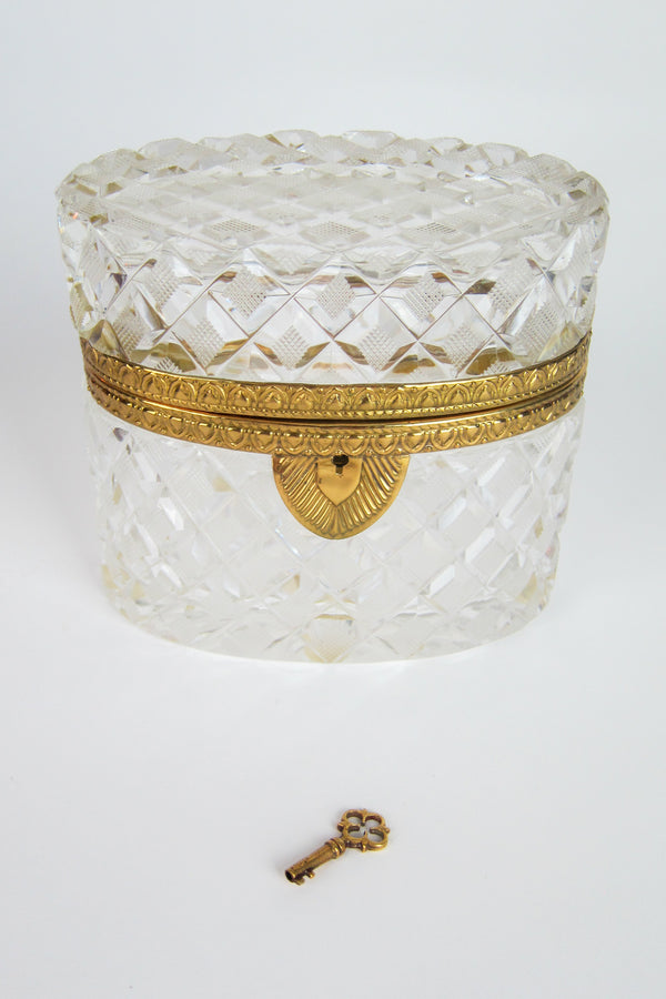 1930s Cut Crystal Gold Ormolu Box / Casket with Key