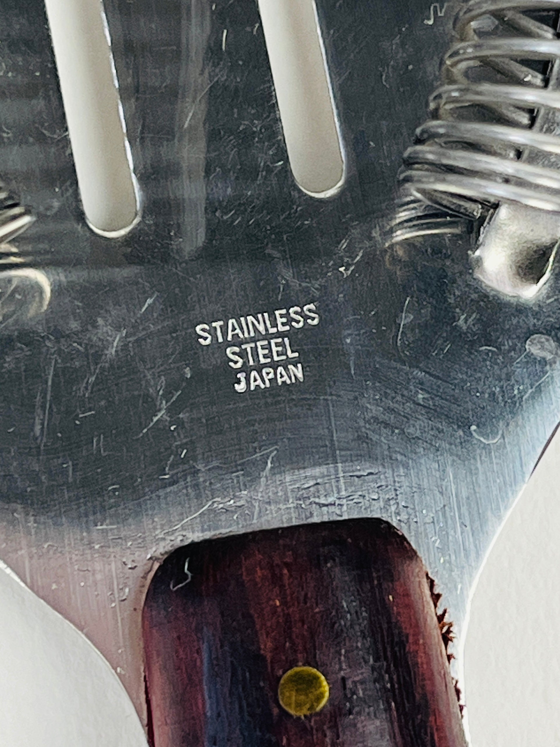 Excellent vintage condition. Freshly oiled with food-grade cutting board oil. We recommend you oil the wood base and handles as needed for maintenance.