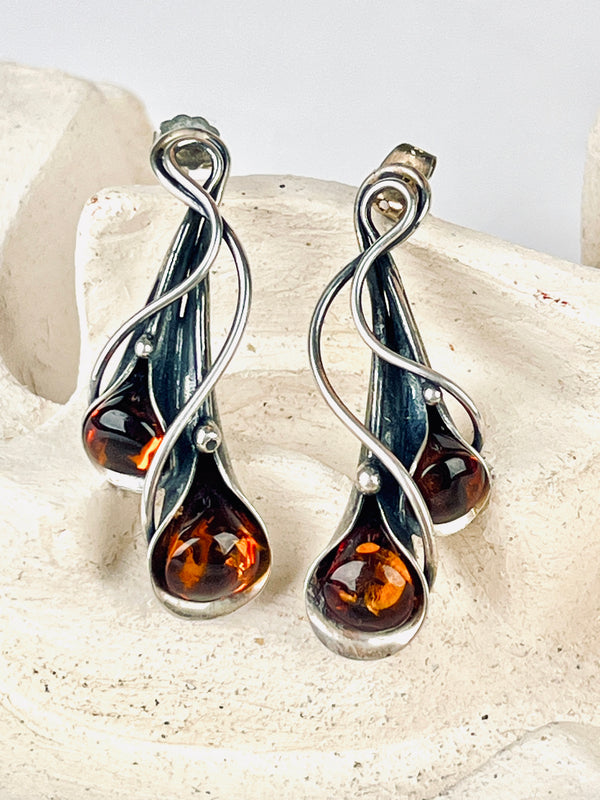 Vintage Modernist Gold Vermeil, Sterling & Gemstone Earrings by Michou