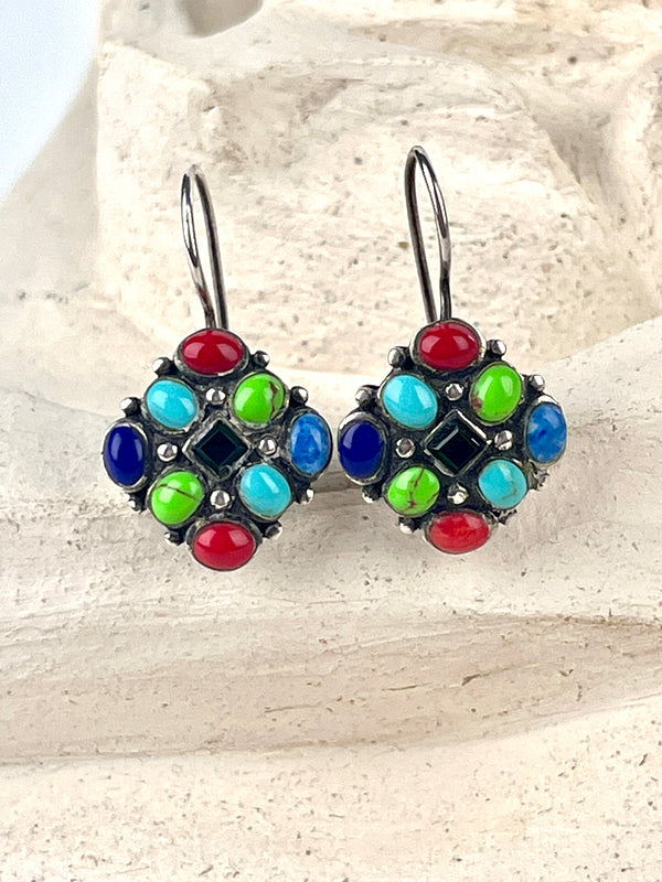 Vintage Zuni Half-Hoop Sterling & Inlaid Stone Earrings by David Lucio