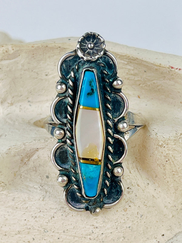 Vintage Navajo Sterling, Turquoise & Coral Ring