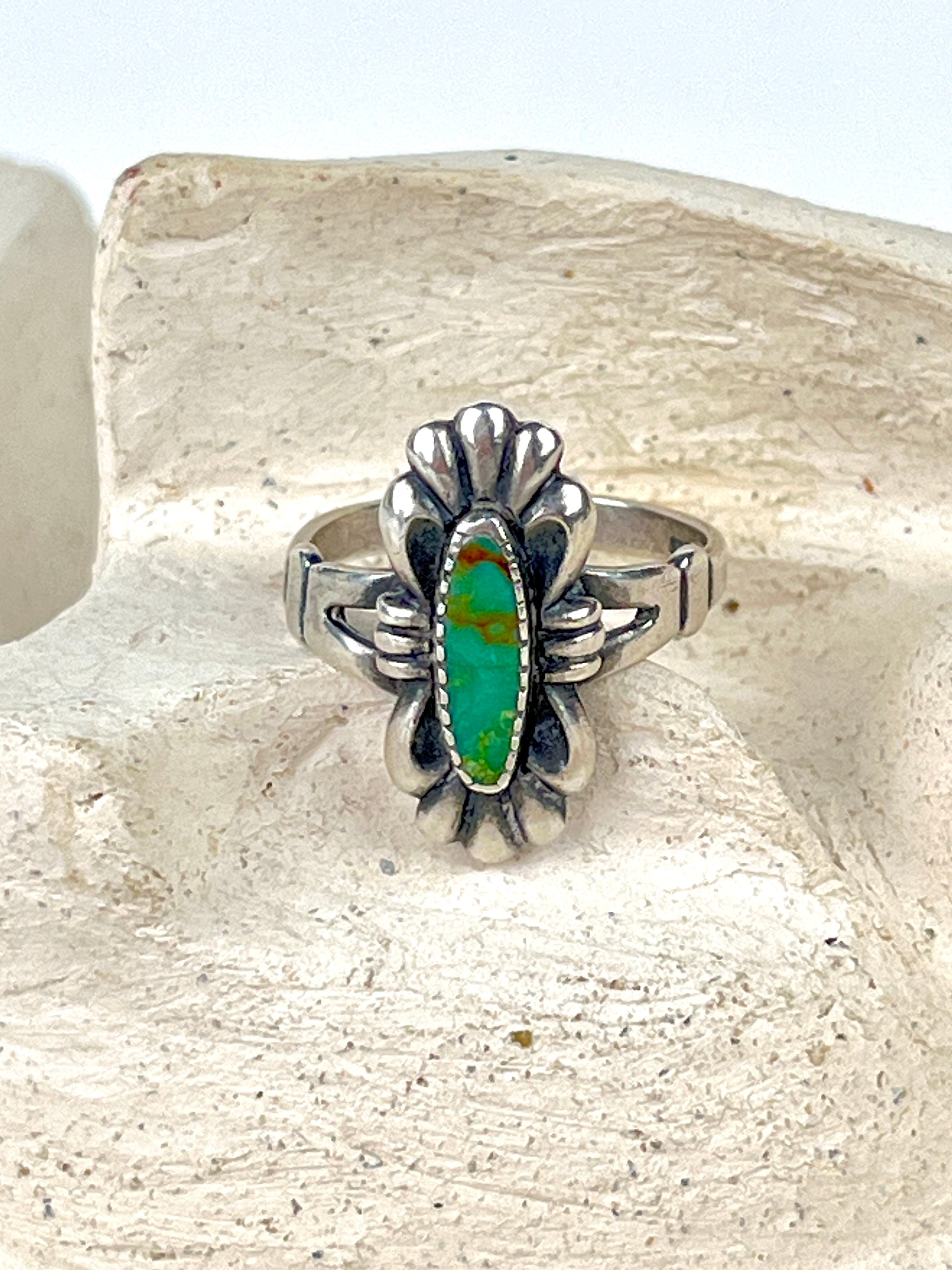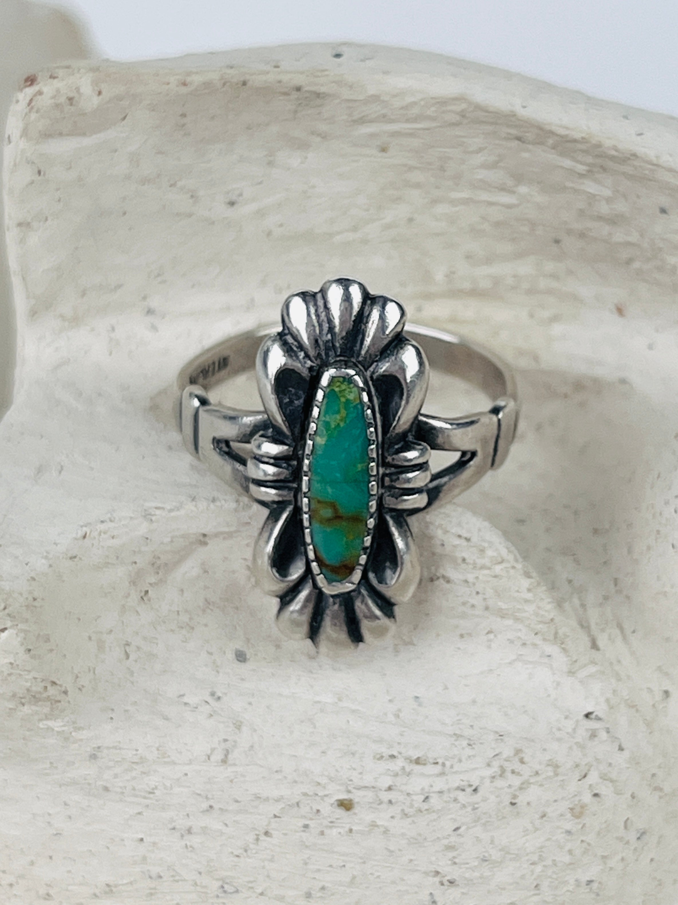 Vintage sterling silver and turquoise ring by Bell Trading Post. Signed.
