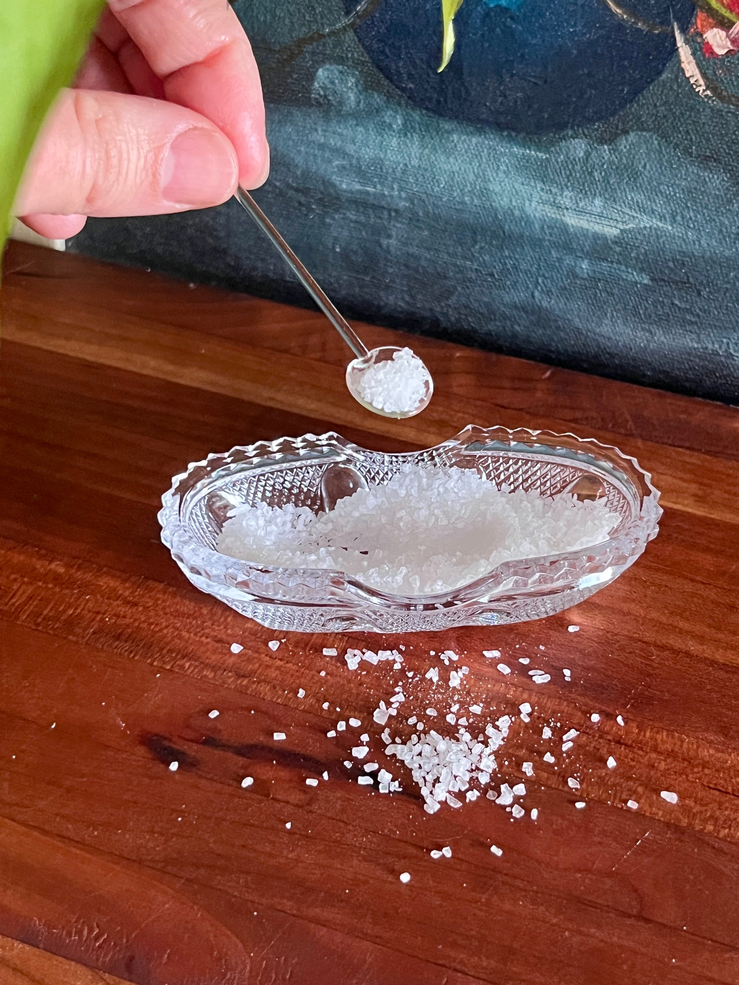 Vintage Glass Salt Server & Spoon