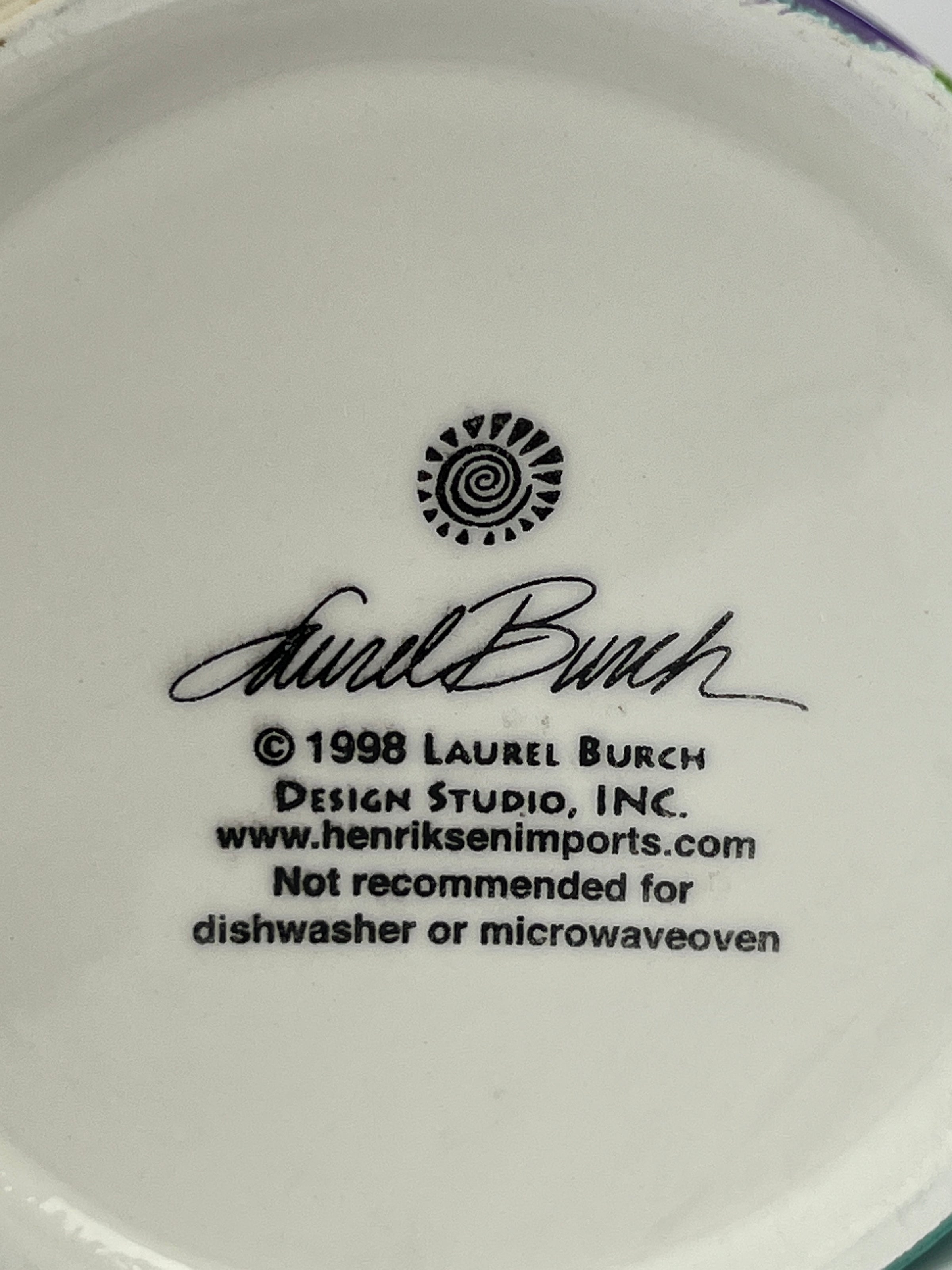 Vintage 90s ceramic large cat mug by Laurel Burch. Signed.