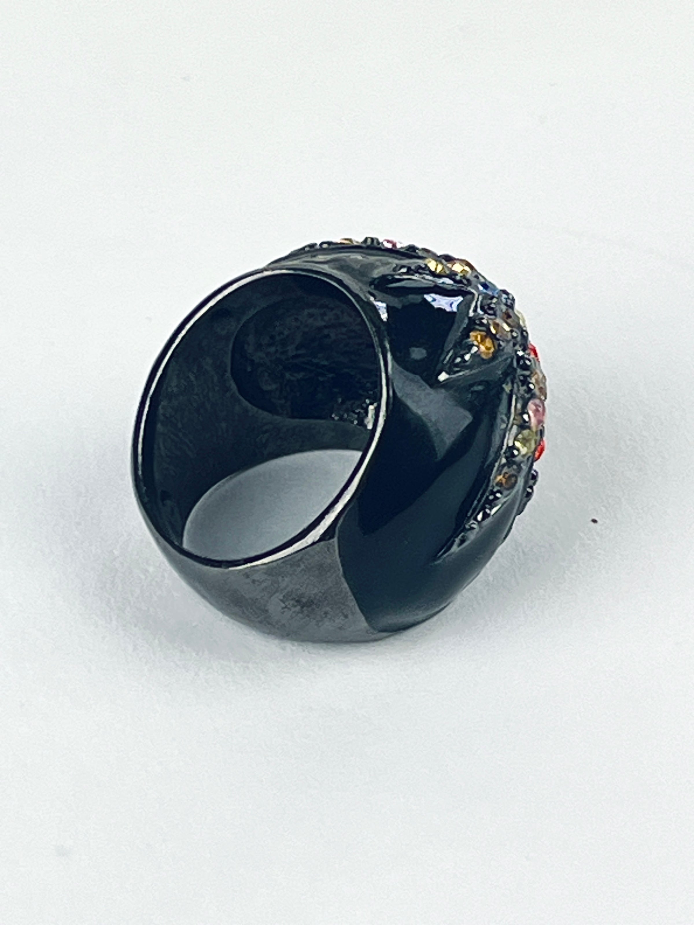 Vintage domed costume cocktail ring with multicolor rhinestones.