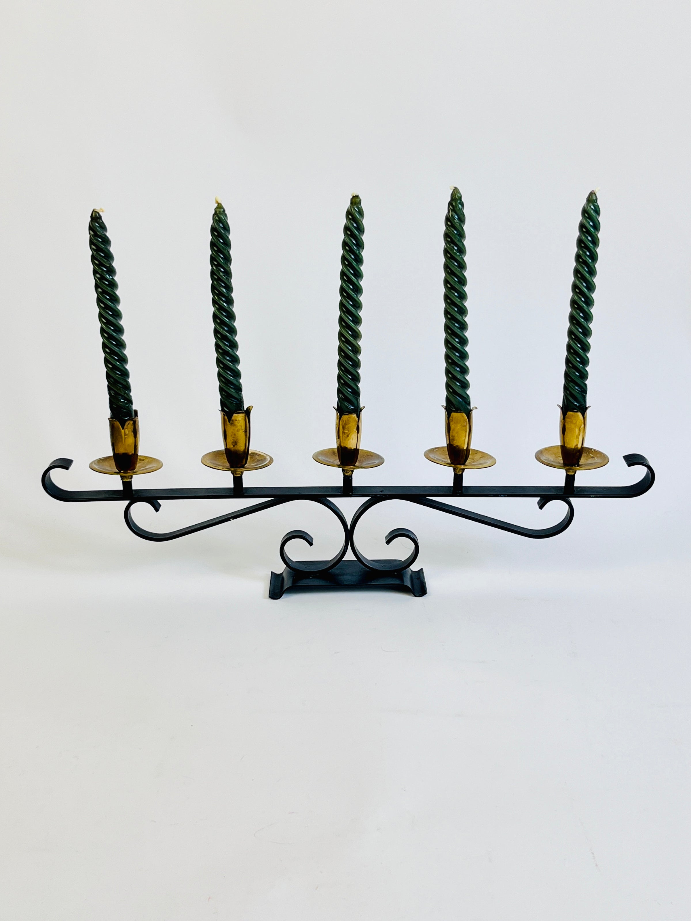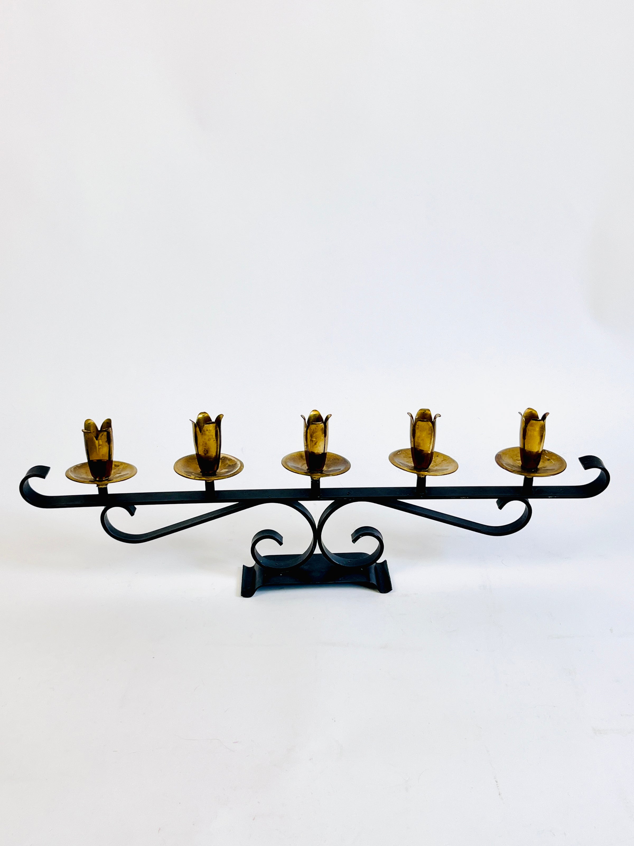 Vintage Mid-Century Modern Brass & Iron Candelabra