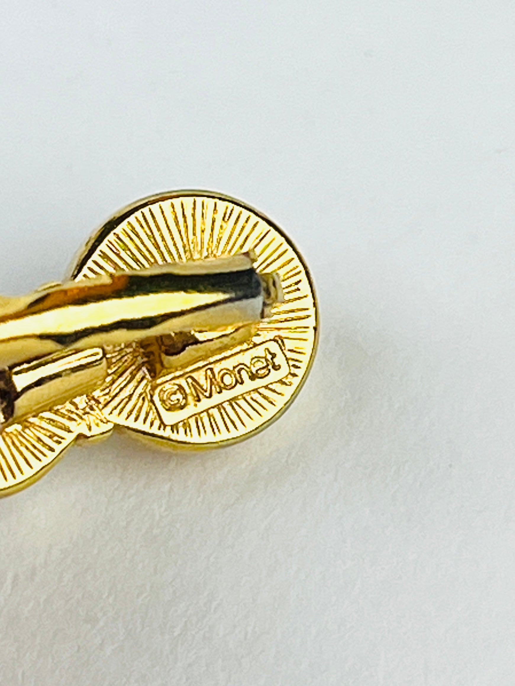 Vintage gold tone faux pearl earrings by Monet. Signed. For pierced ears.